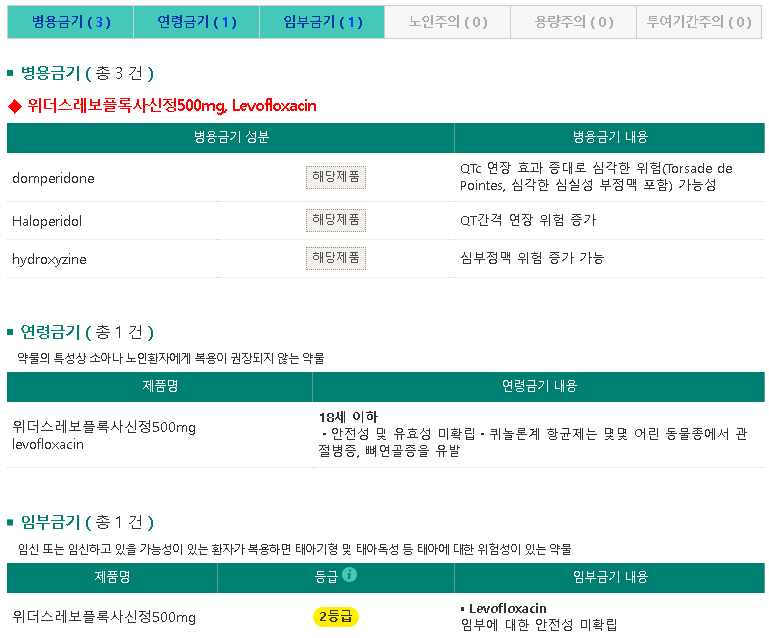 본제 및 퀴놀론계 항균제에 과민증 기왕력자, 본제 및 퀴놀론계 항균제로 인한 건염·건파열 기왕력자, 18세 이하, 임부·가임부·수유부, 간질.